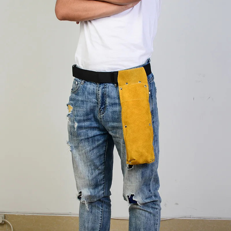 This portable waist bag is made of flame retardant cowhide leather, perfect for construction workers, electricians, and welders.