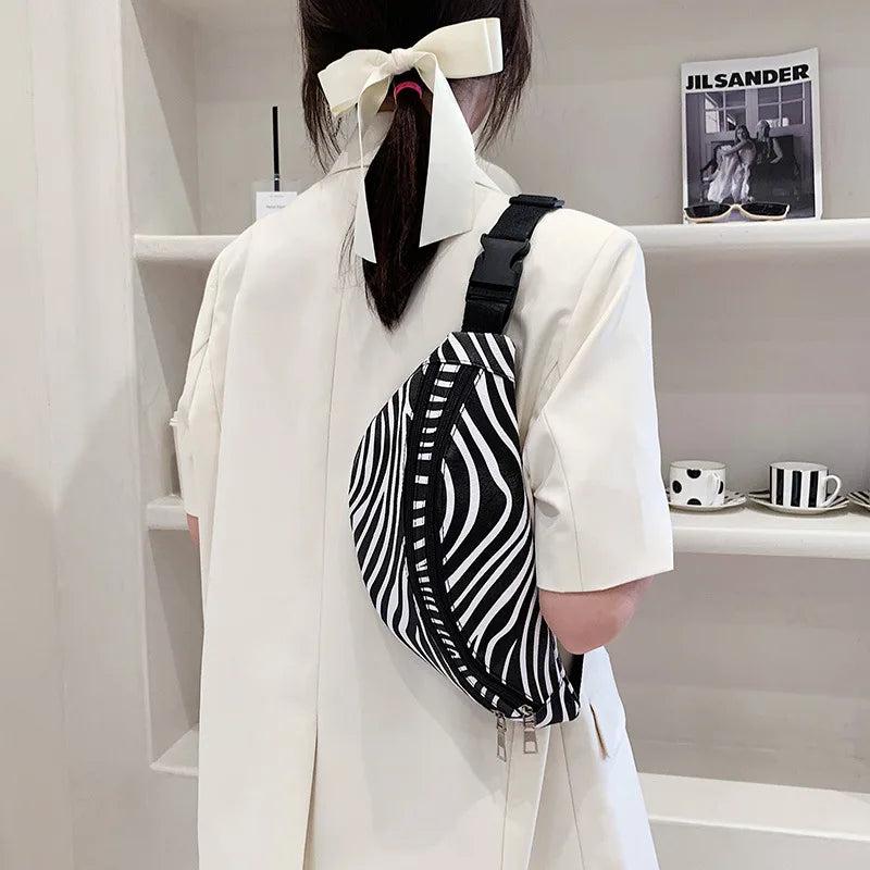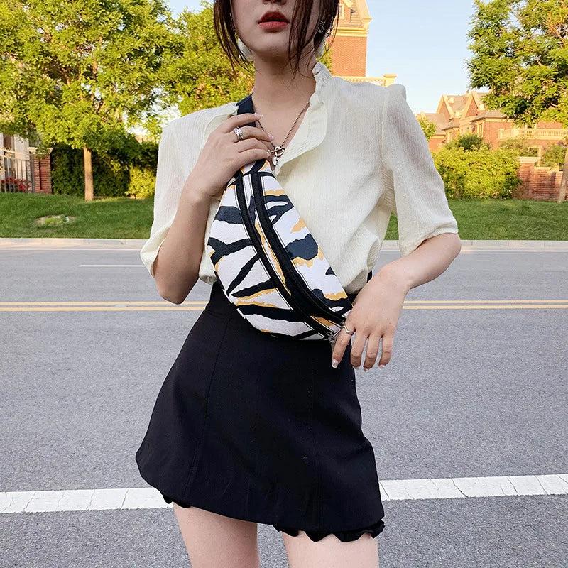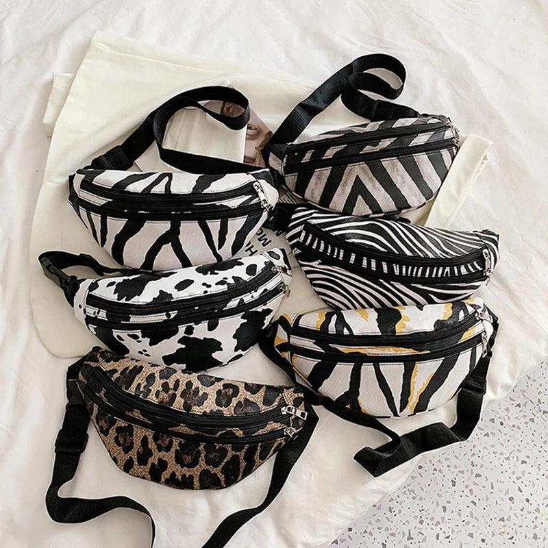 Leopard Pattern Chest Bag Messenger Bag Ladies Striped Sports Waist Bag