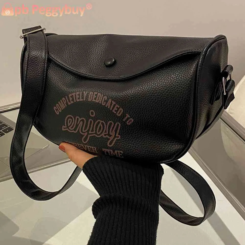 This crossbody bag is made of high-quality PU leather, featuring a stylish letter print design. It is perfect for casual outings and daily use.