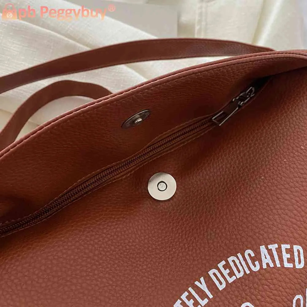 Letter Printed Crossbody Bag PU Leather Soft Large