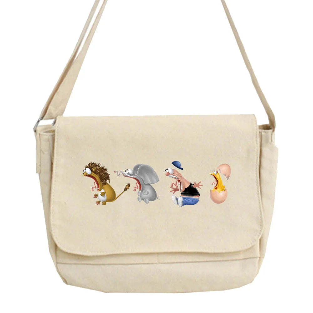 This multi-functional messenger bag is perfect for college and everyday use. It features a trendy Harajuku design with cartoon patterns, making it a stylish accessory.