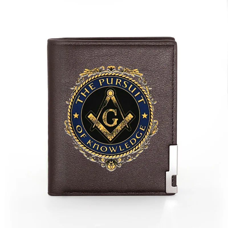Masonic Man Leather Wallet Pursuit Of Knowledge Cover Billfold Slim