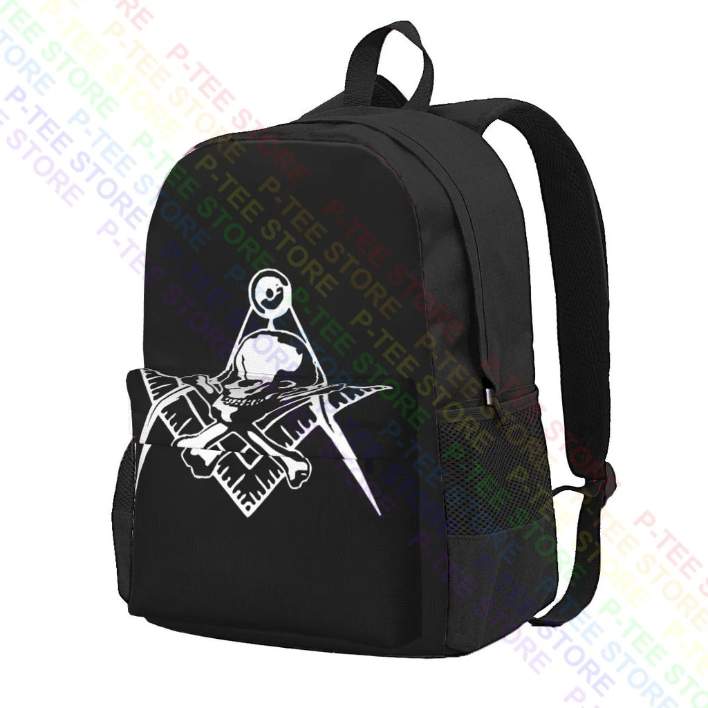 Large capacity backpack storage bag featuring Masonic symbols like Skull, Crossed Bones, Master Mason, Shriner, and Scottish Rite F A M.