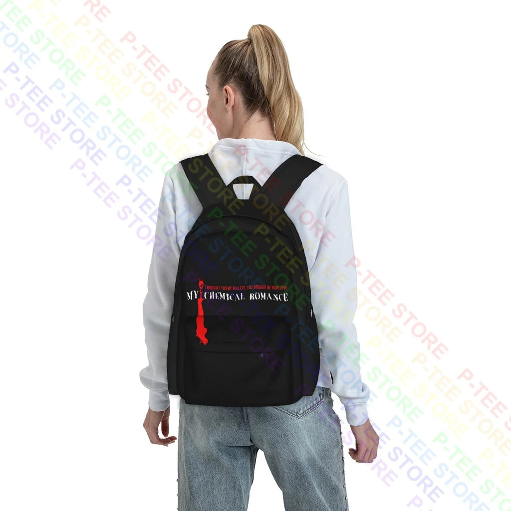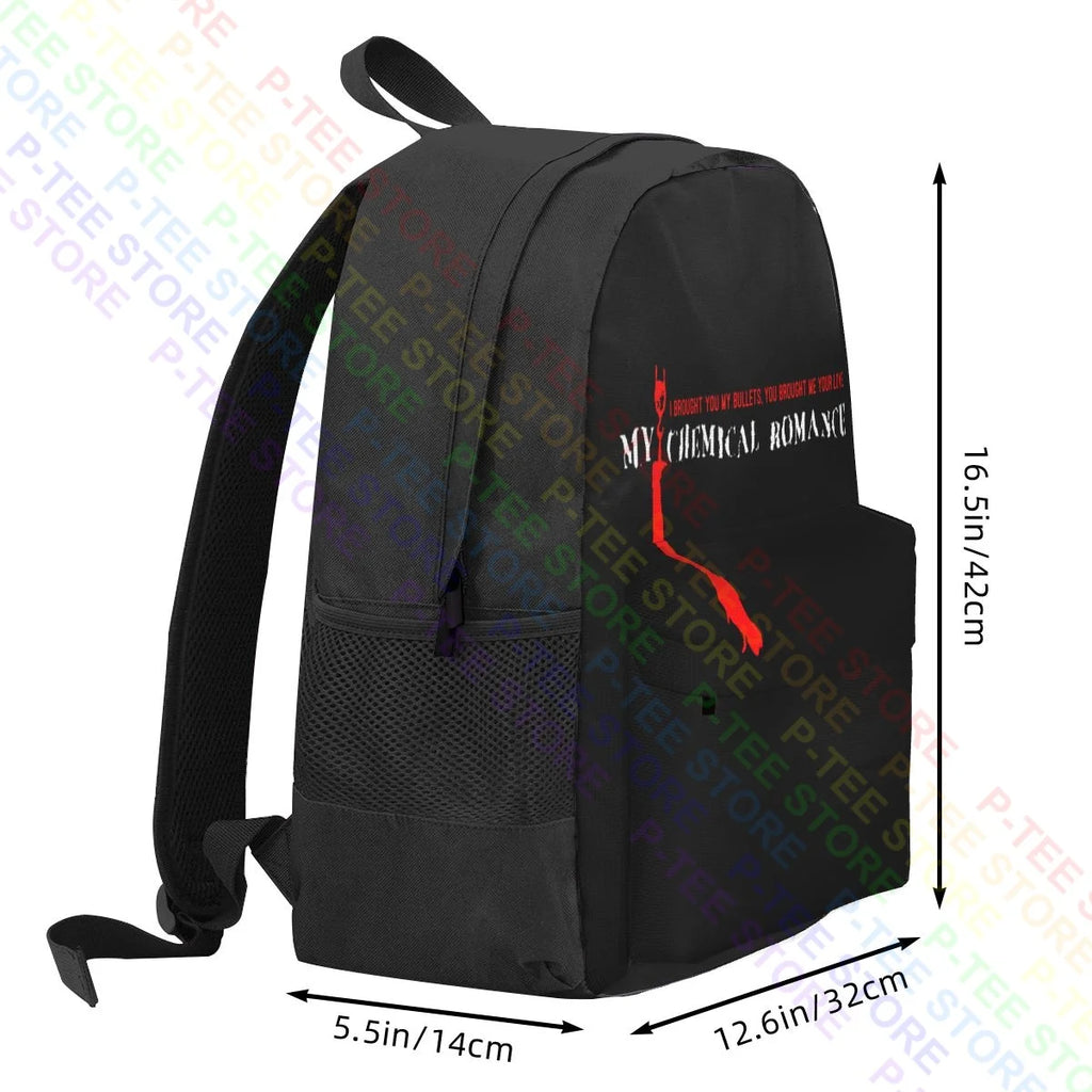 Description:Large capacity backpack featuring My Chemical Romance art print, perfect for travel or gym use.Features: Unique MCR Eyeball First Bullets design Spacious with large capacity for all your essentials Great for travel, gym, or everyday use Durable and high-quality materials Adjustable straps for comfortable carrying This product may be available...
