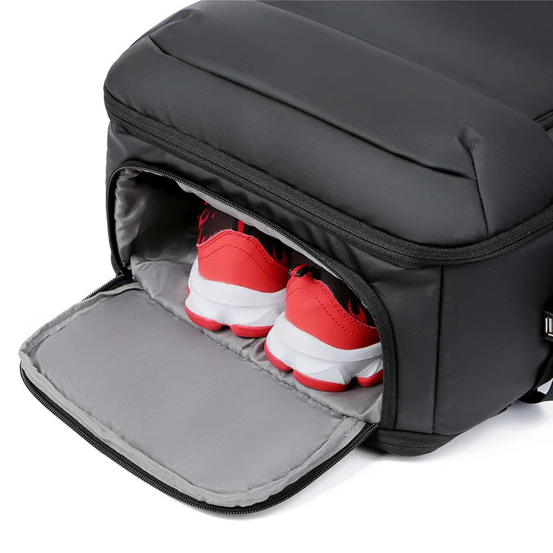 This versatile backpack is designed for business travel with a shoe position compartment and waterproof construction.