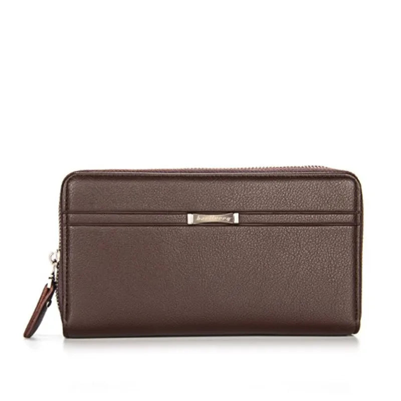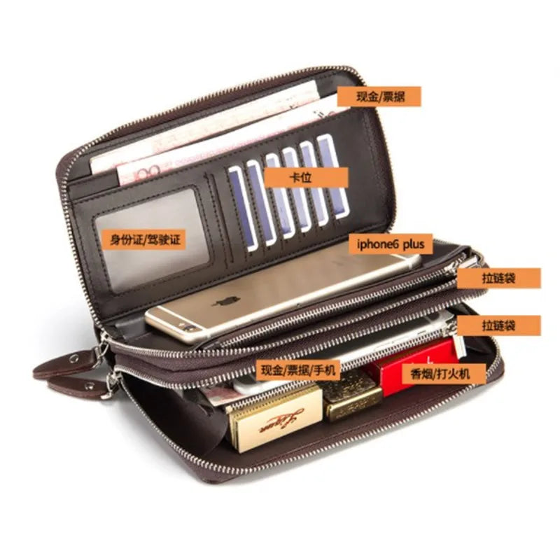 Men's Leather Double Zipper Long Wallet Clutch Handy Bags