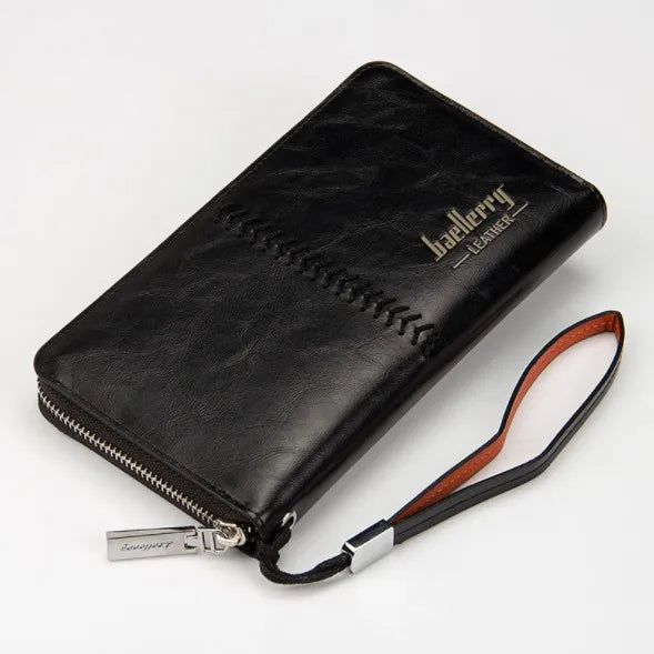 Men's Long Zipper Leather Clutch Bag Multi-function Wallet