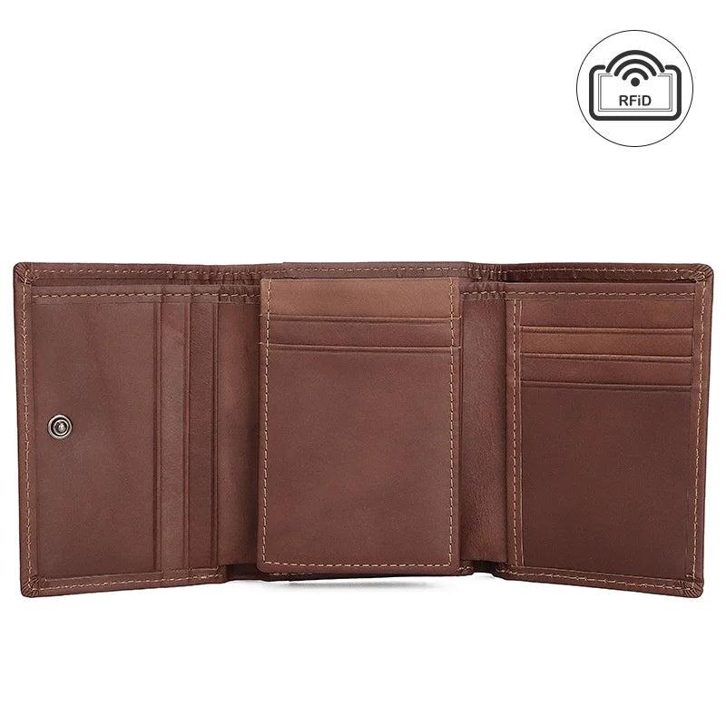 Stay secure and stylish with this RFID anti-theft leather wallet for men. Features card slots, a money clip, and a US dollar clip.
