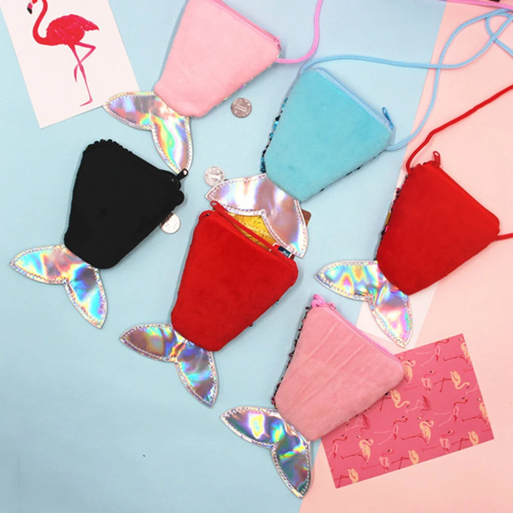 Mermaid Tail Sequins Coin Purse Crossbody Bag for Girls