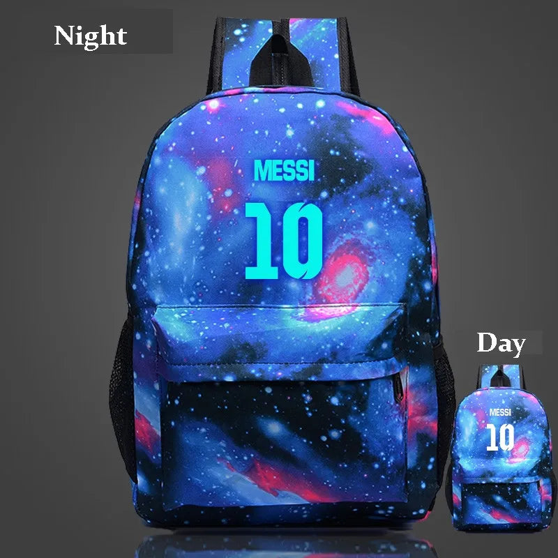 Messi Night-luminous Barcelona School Bag for Boys, Galaxy Design