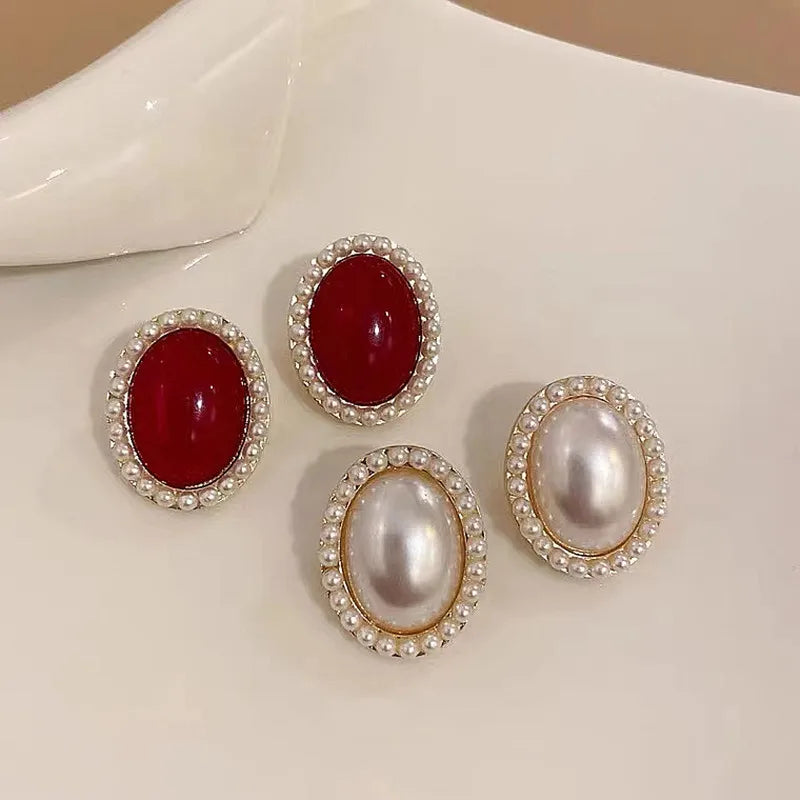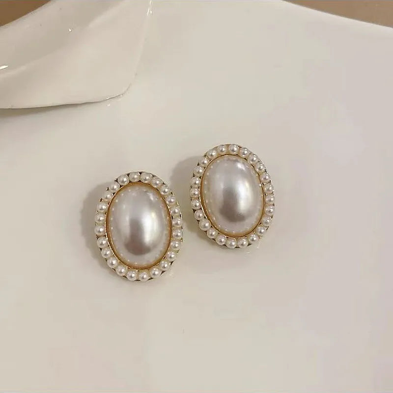 Add a touch of elegance with these metal pearl earrings featuring a European American style design.