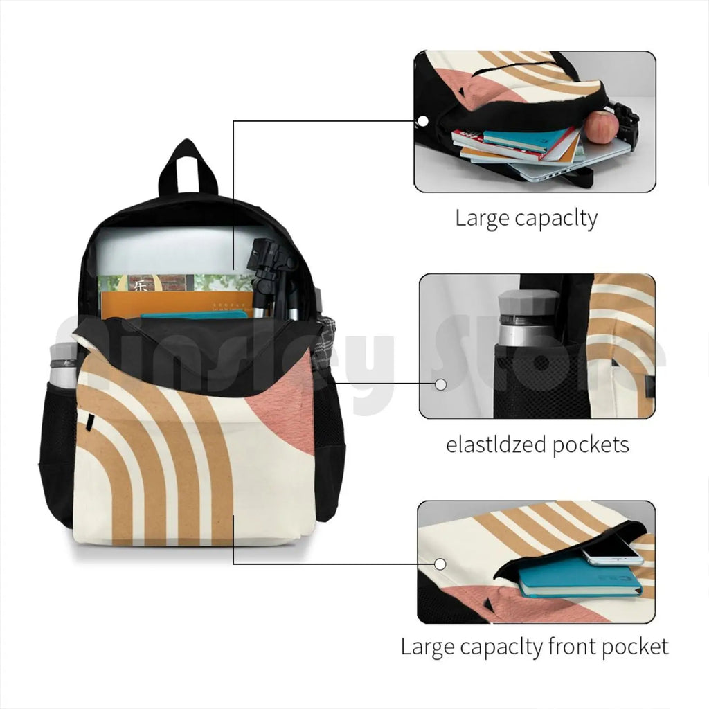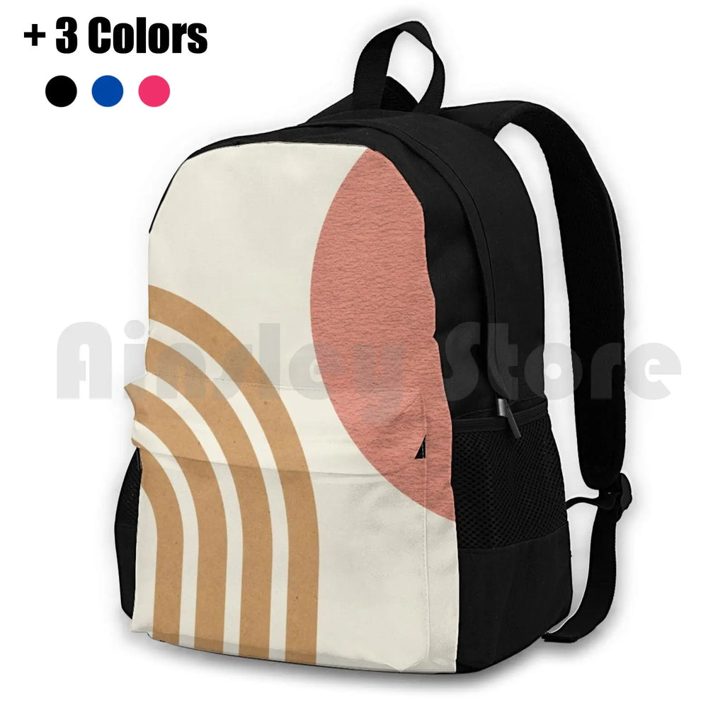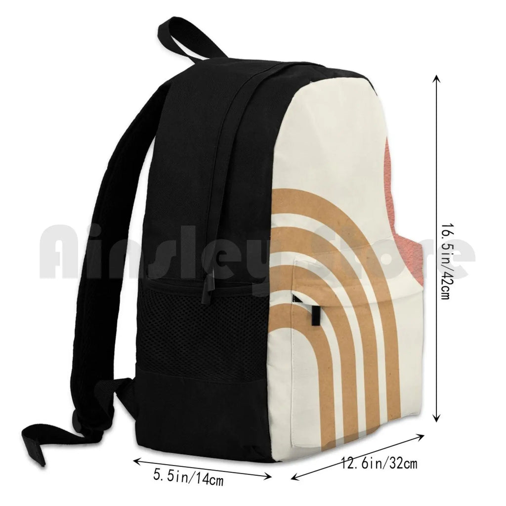Mid Century Modern Pink-Sun & Rainbow Outdoor Hiking Backpack