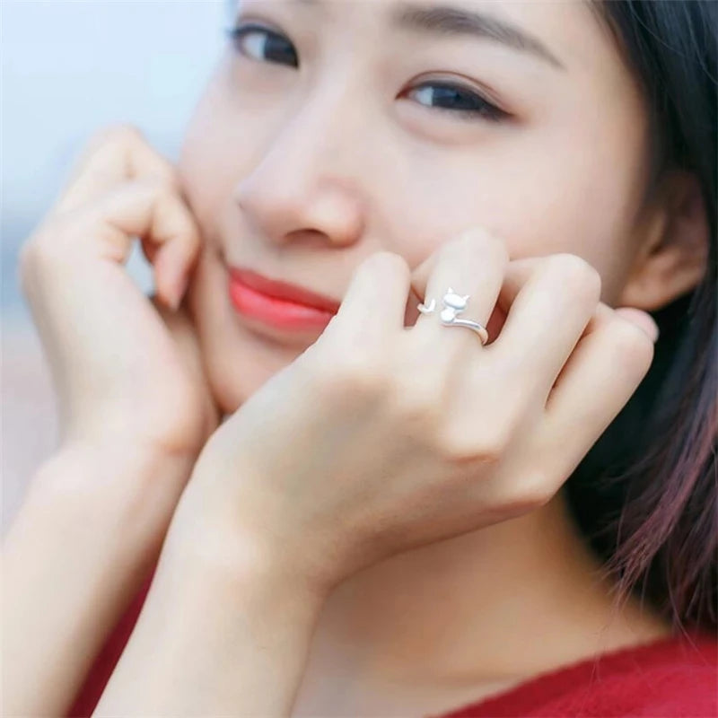 Mini Cat Temperament Drawing Sweet Female Resizable Rings