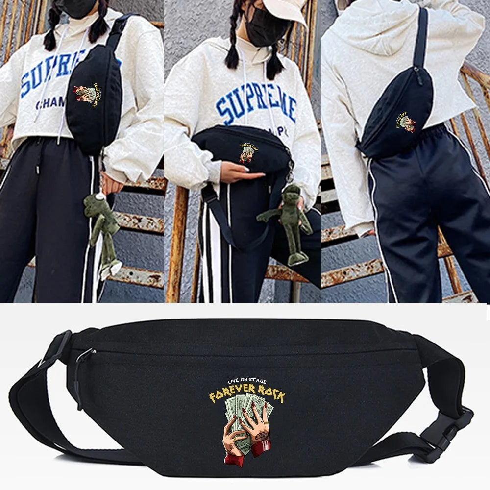 Stay stylish and organized with this waist bag featuring a money gesture print. Perfect for outdoor sports, travel, or casual use.