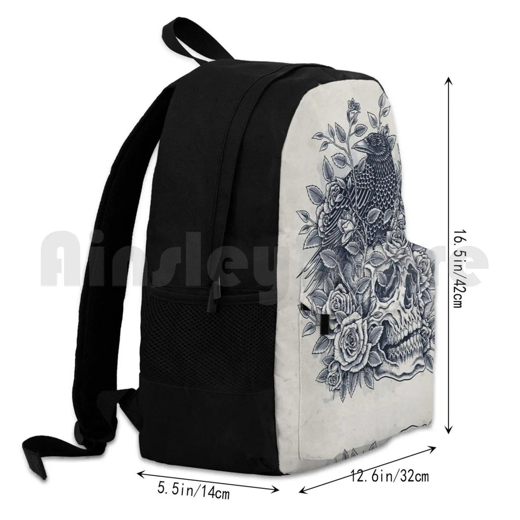 This outdoor hiking backpack features a monochrome floral skull design, perfect for riding, climbing, and other sports activities. The abstract aged anatomy artistic background adds a unique touch to your gear.