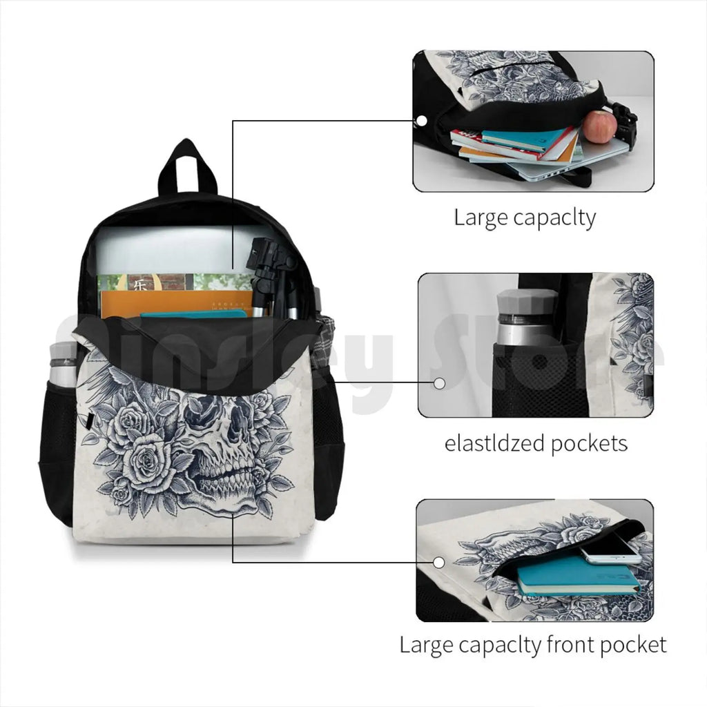 Monochrome Floral Skull Outdoor Hiking Backpack Riding Climbing Sports Bag