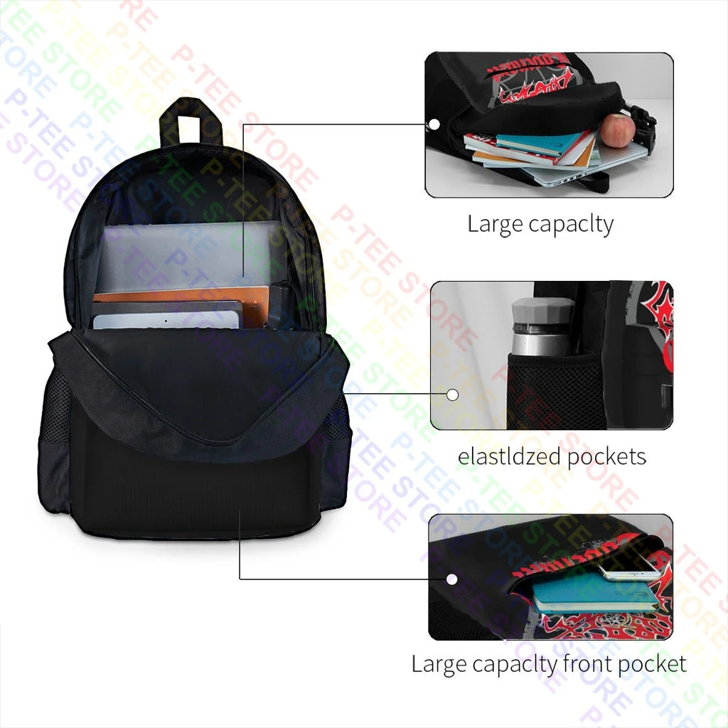 This large capacity backpack is perfect for school or as a gym bag. Featuring iconic death metal band Morbid Angel's Covenant artwork.