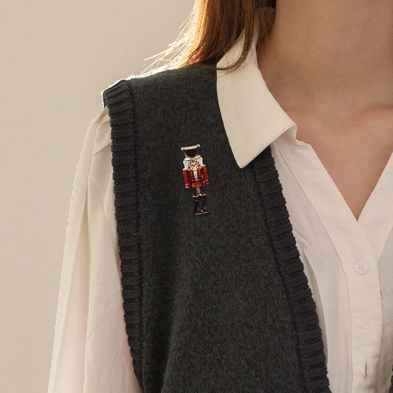 Add a touch of holiday charm with this Nutcracker brooch, perfect for both men and women. Ideal for suits and clothes.