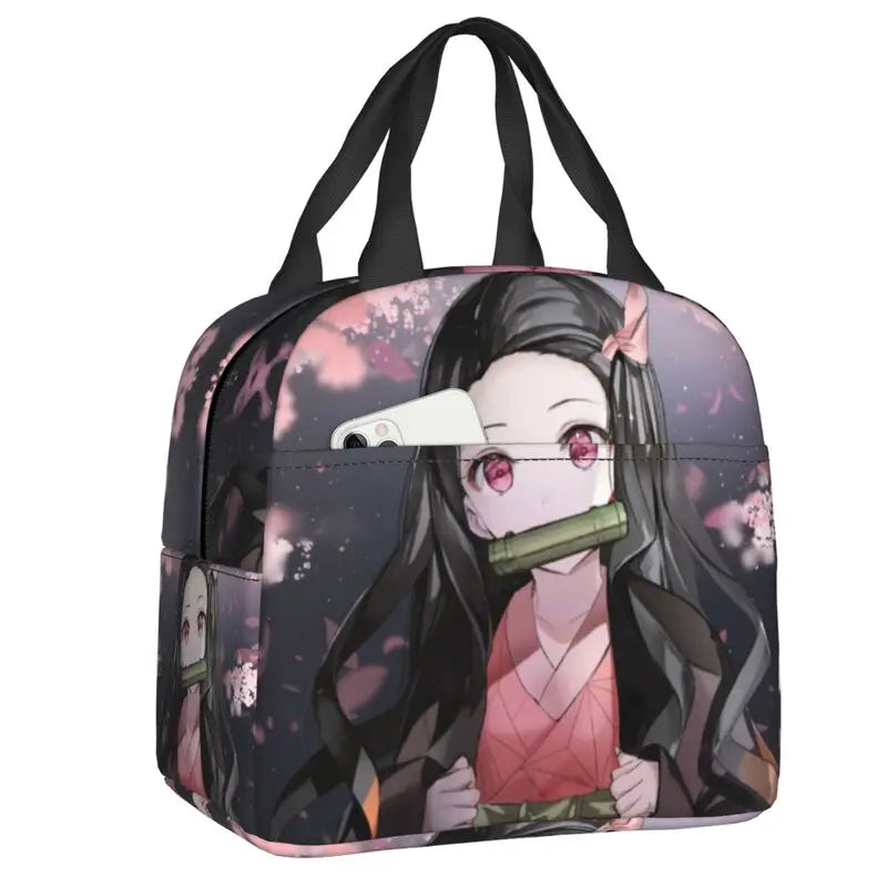 Nezuko Kimetsu No Yaiba Insulated Lunch Bag Reusable Anime Cooler Thermal Tote