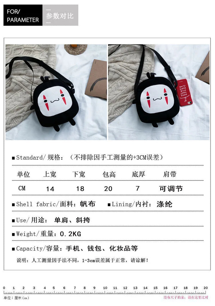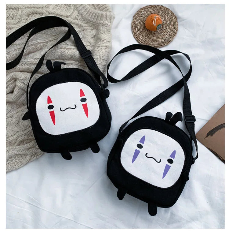 Embrace the spirited style with this No Face Man messenger bag inspired by Hayao Miyazaki's Spirited Away. Perfect for kids and adults for Halloween party cosplay.