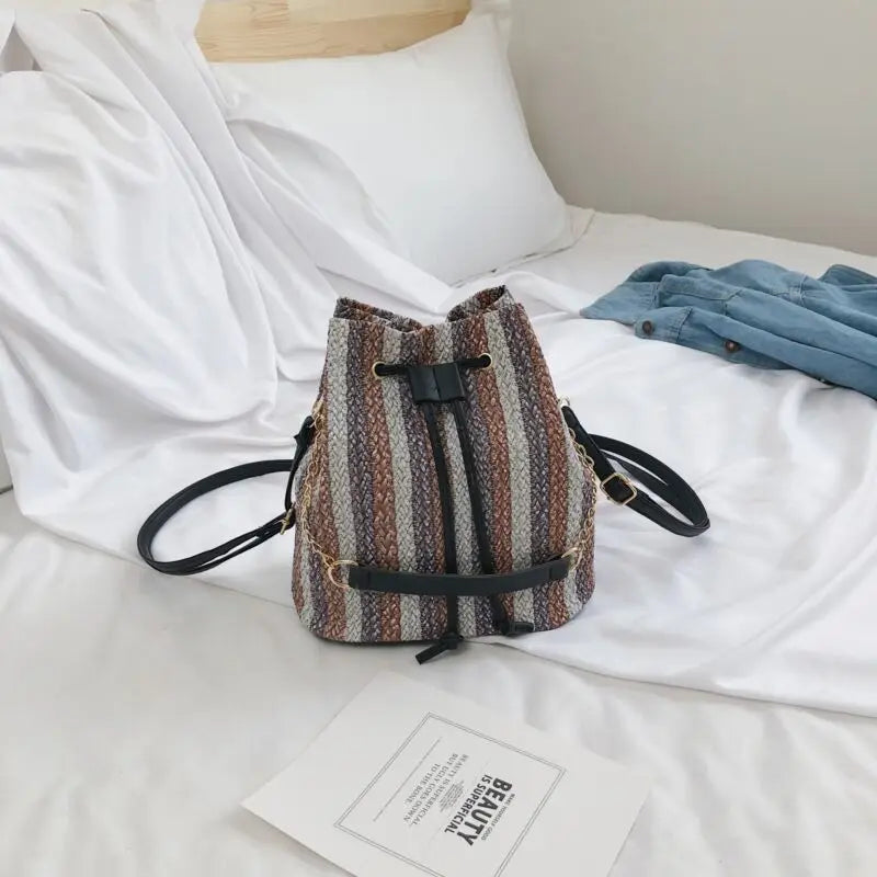 Novelty Straw Bag Woven Backpacks Panelled Striped Vintage Knitted Bag Rucksacks