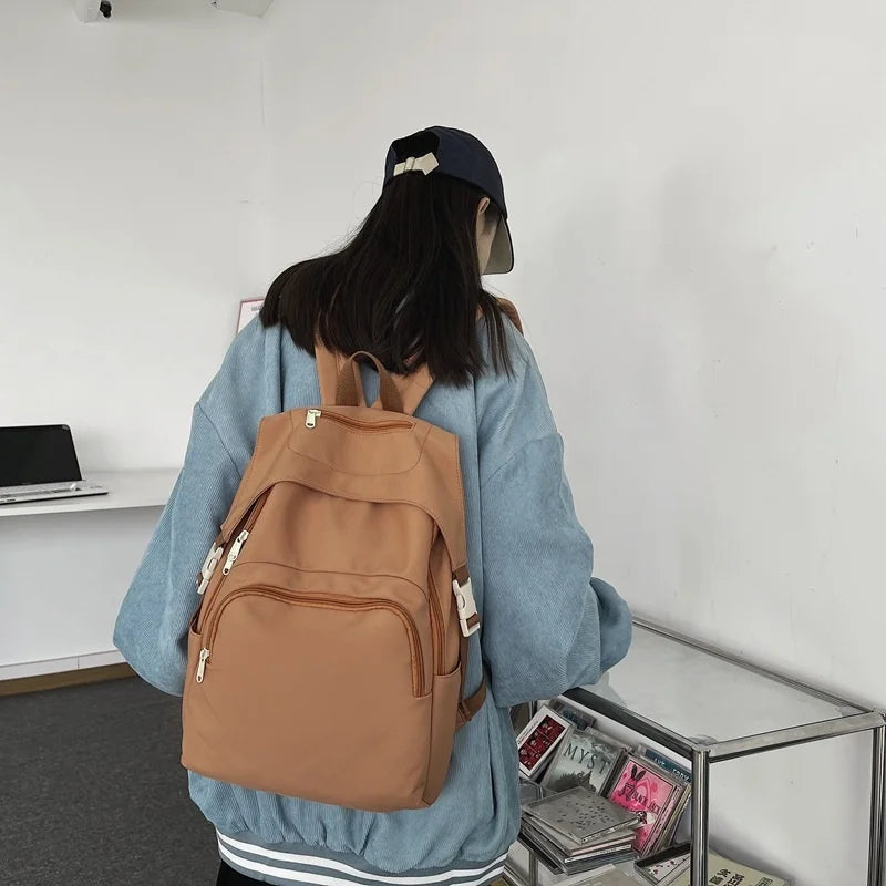 This solid nylon backpack is perfect for college girls and boys. It's a stylish rucksack suitable for students to carry books and essentials. Great for school and travel.