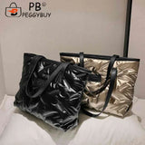 Stay cozy and stylish with this nylon cotton-padded handbag featuring a large capacity, warm design, and convenient zipper closure.