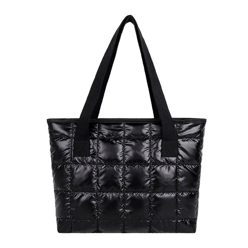 Stay cozy and stylish with this high capacity nylon shoulder bag, perfect for winter outings. Made with space cotton material, quilted design, and ideal for shopping or travel.