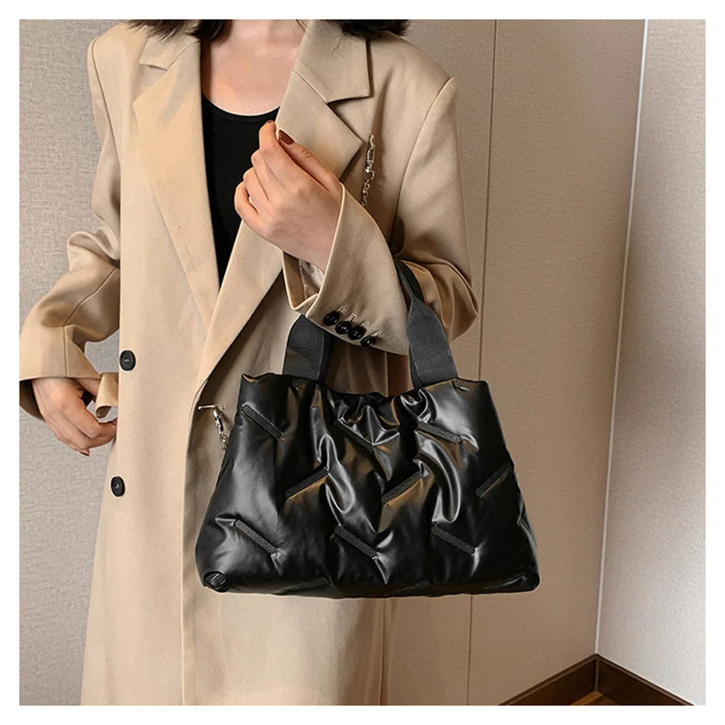 Stay stylish and cozy with this padded down feather handbag made of durable nylon. Perfect for the autumn and winter seasons.