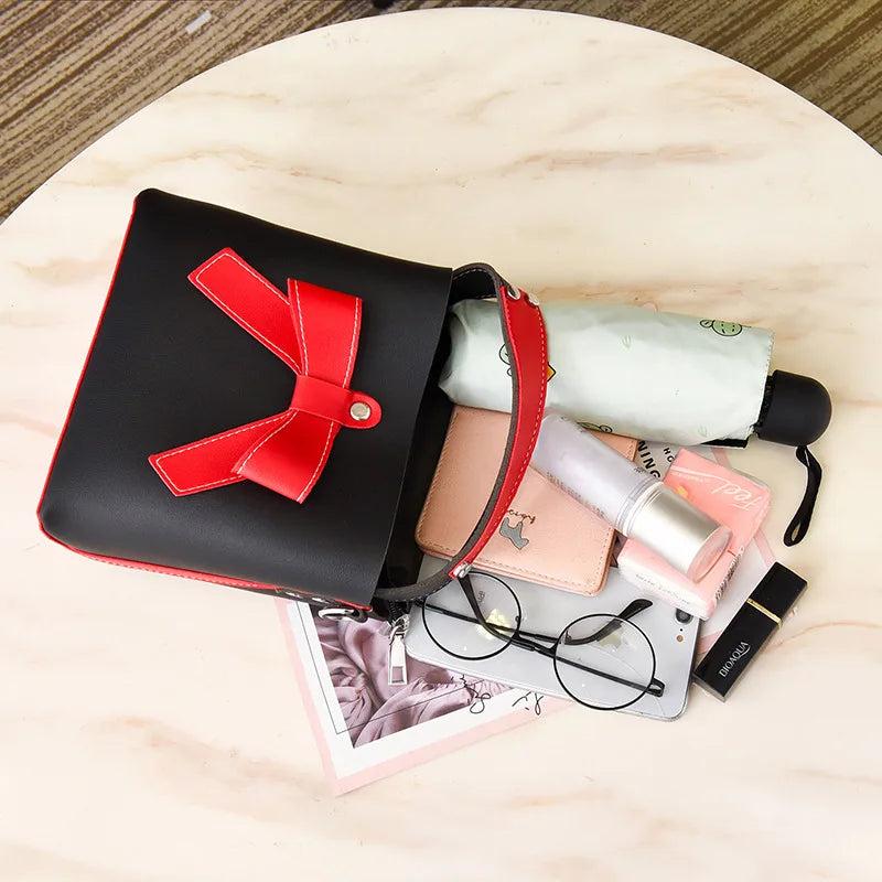 One-shoulder Bucket Bag Female Autumn Portable Bow Hit Messenger Bag