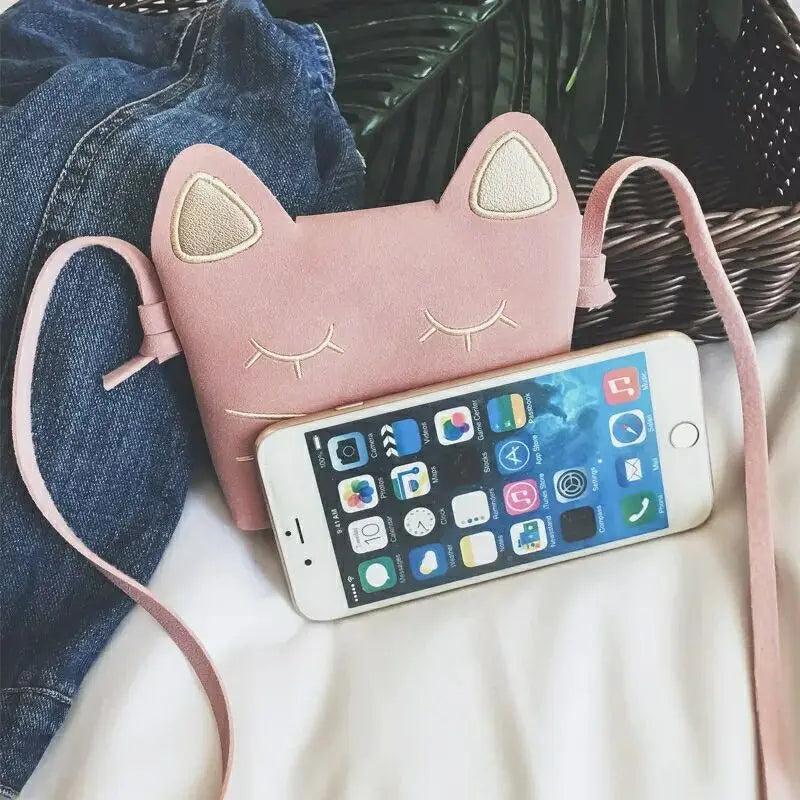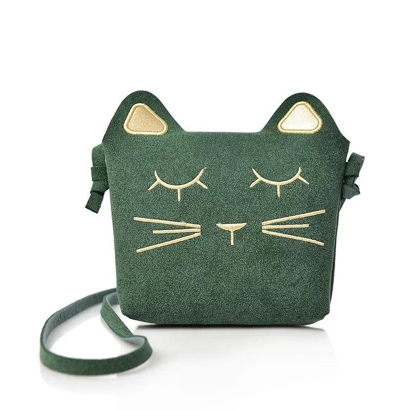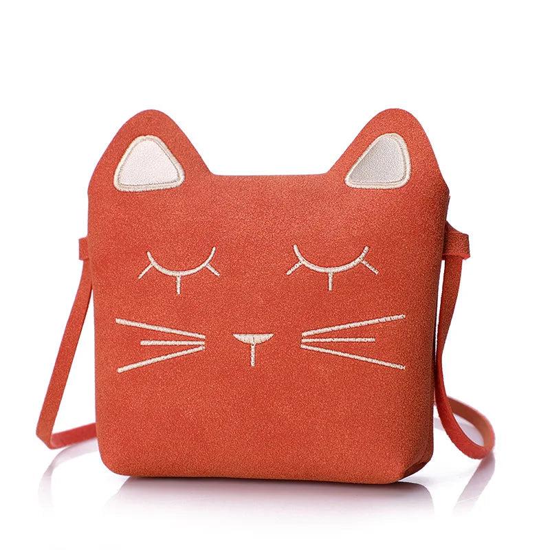 Adorable one-shoulder bag for kids featuring a cute cartoon design, perfect for spring and summer. Made of high-quality frosted leather with embroidered kitten detail.
