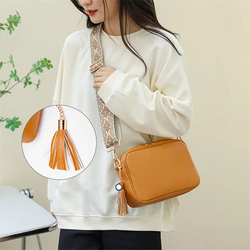 This stylish orange leather crossbody bag is perfect for females on-the-go. It can be used as a casual hobo or chest bag, making it ideal for middle students. The adjustable shoulder strap adds convenience and comfort.