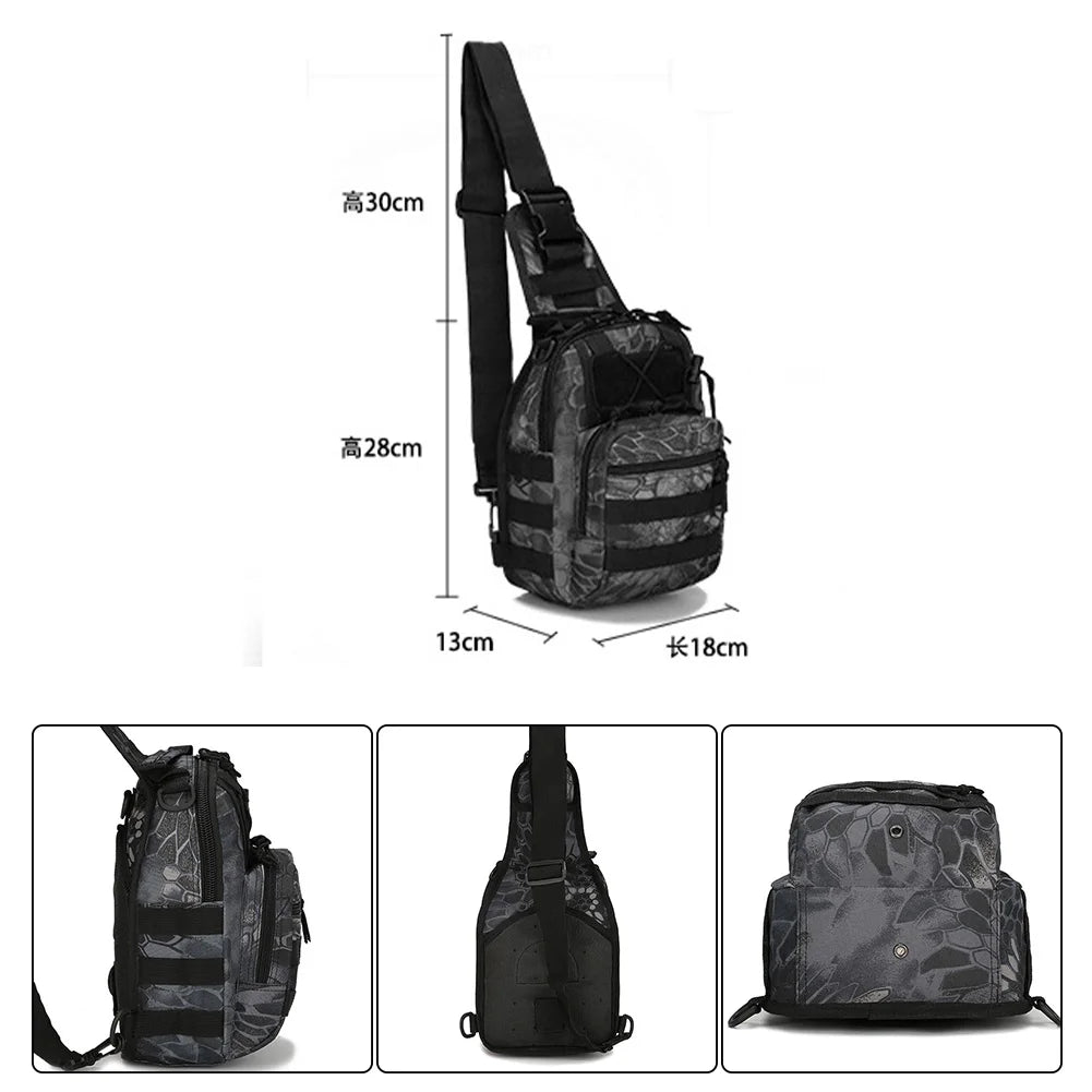 This tactical daypack is perfect for various outdoor activities like camping, hiking, trekking, fishing, and more. It offers ample storage space and comfortable shoulder straps.