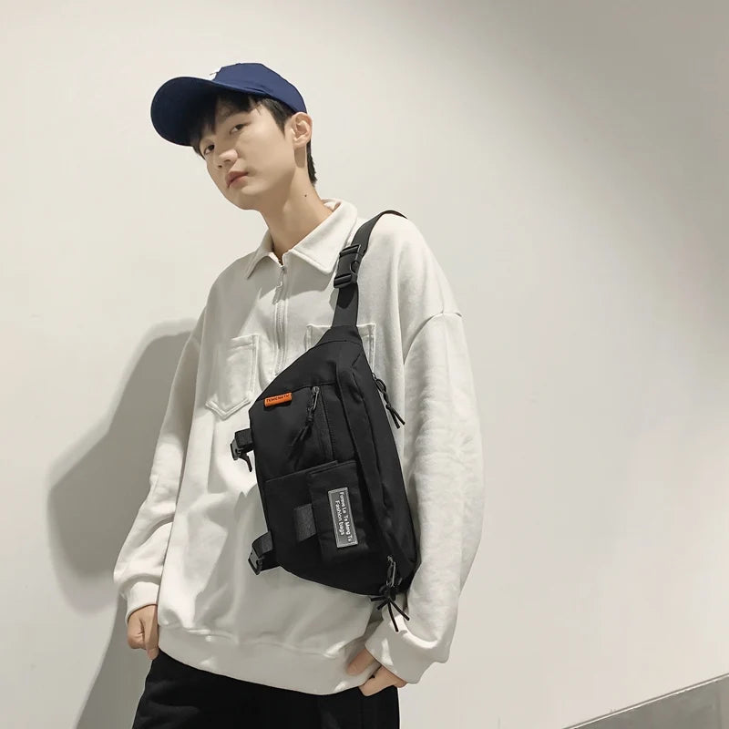 This chest pack is perfect for street fashion and outdoor activities. Made of durable nylon material, it can hold your essentials securely.