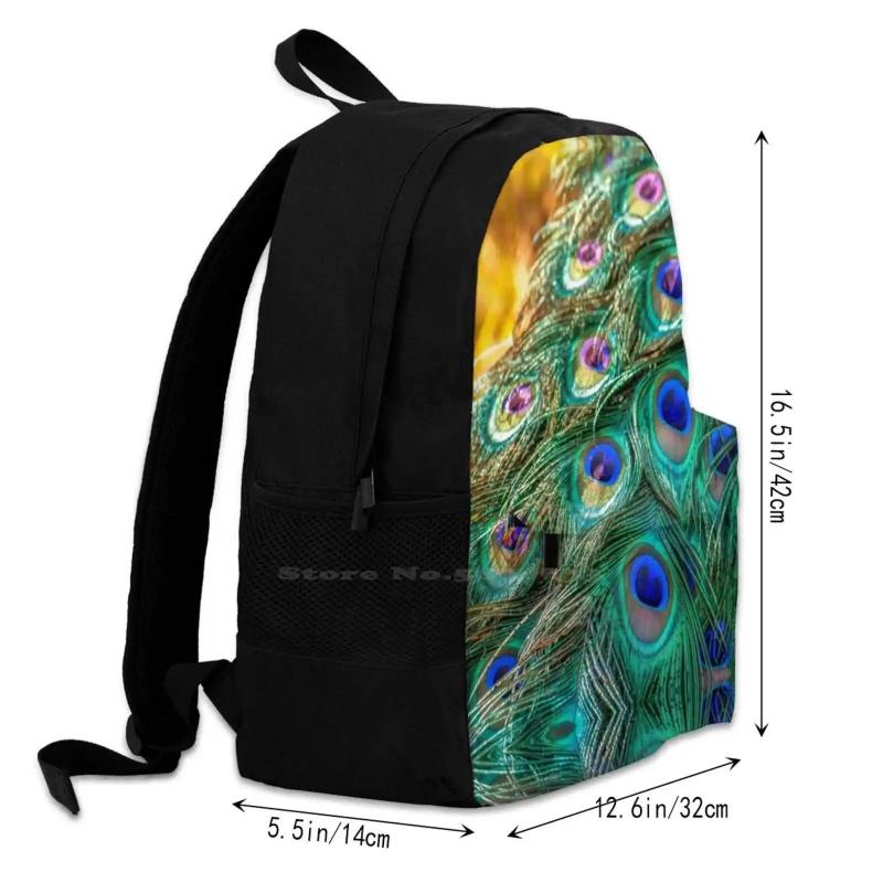 Peacock Feather School Bag Big Capacity Backpack Laptop 15 Inch