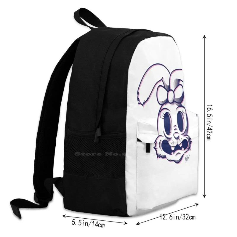 This stylish backpack features a cute bunny rabbit design by Madelyn Dipasquale. Perfect for teens and college students, it's great for carrying laptops and traveling.