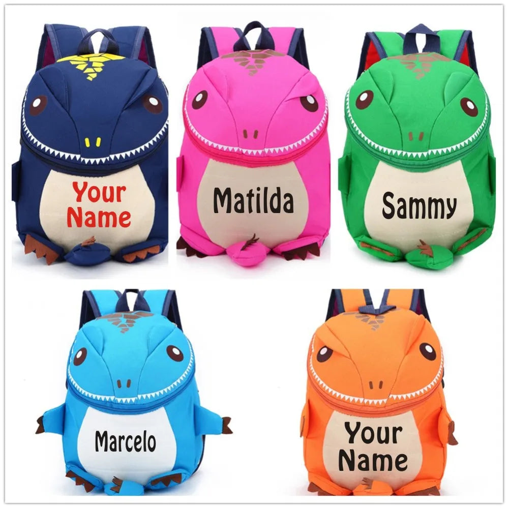 Personalised Dinosaur Backpack Name Portable Children Travel School Rucksacks