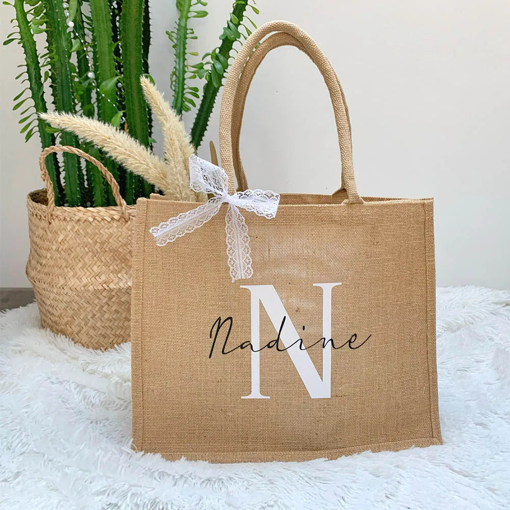 Get this customized Natural Jute Bag with your initials as a perfect gift for any occasion. Ideal for shopping, travel, or everyday use.