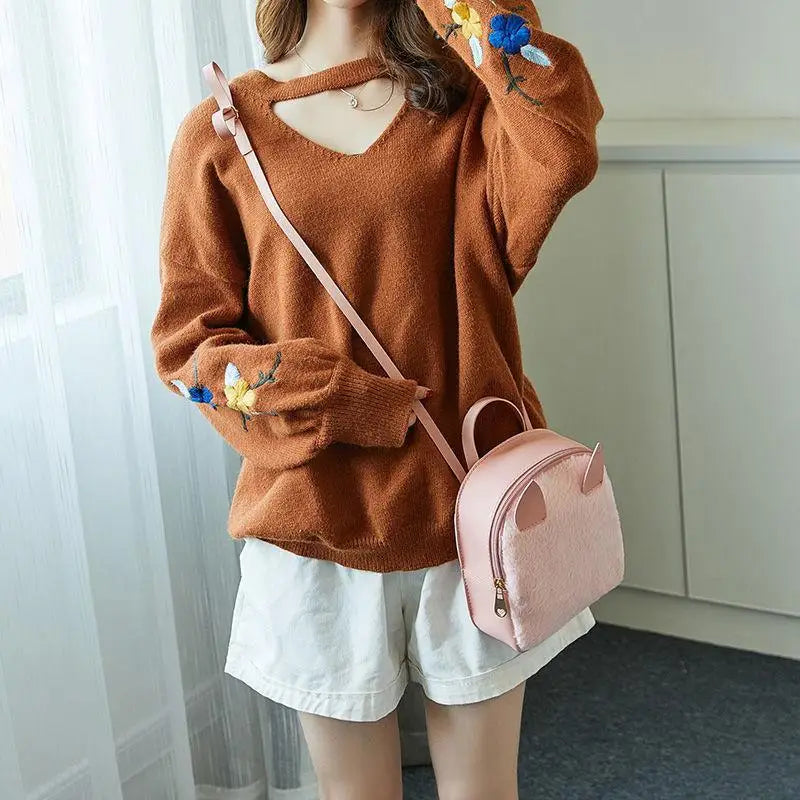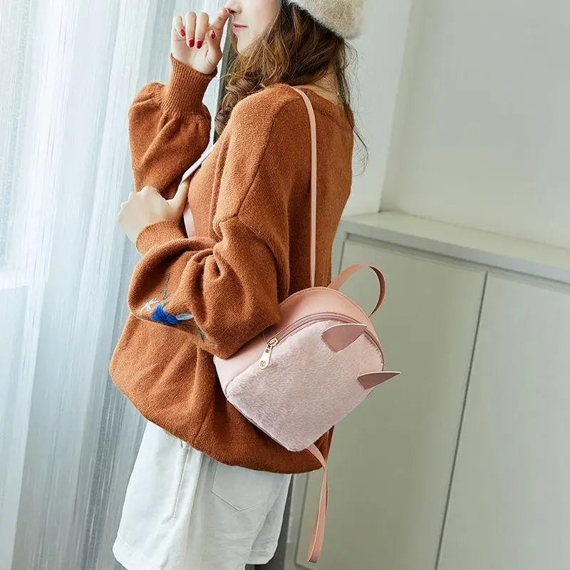 Pink Sweet Backpacks Students Fluffy Patchwork Multi-function Girls