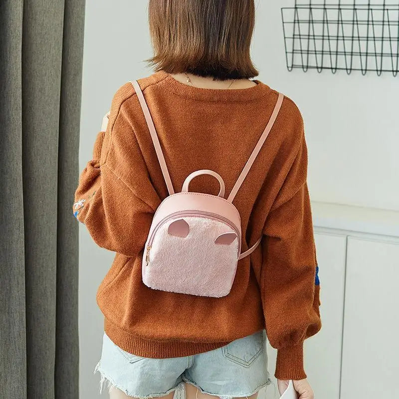 This pink sweet backpack is perfect for students with its fluffy patchwork design. It offers multi-functionality and is ideal for casual use by girls.