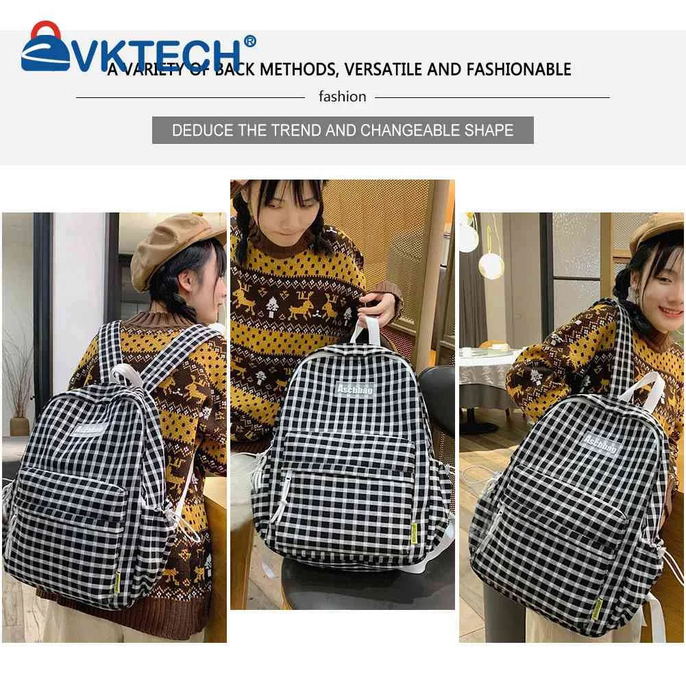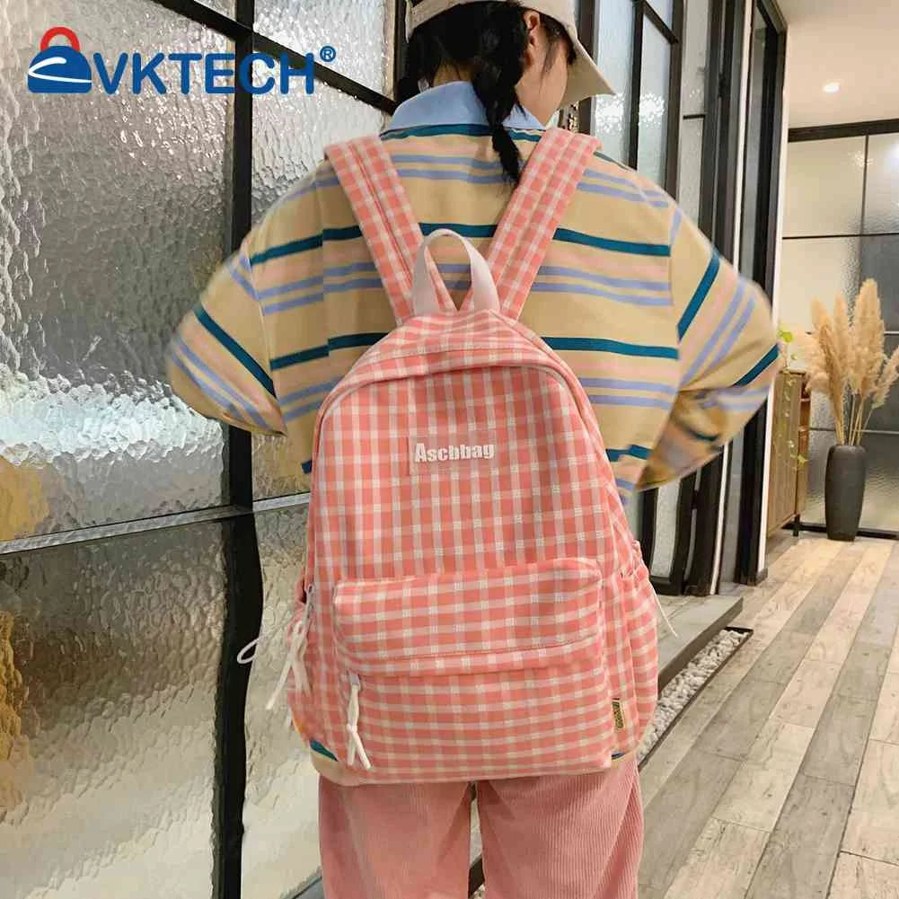 Plaid Backpack Student College Schoolbag Fresh Laptop Bookbag