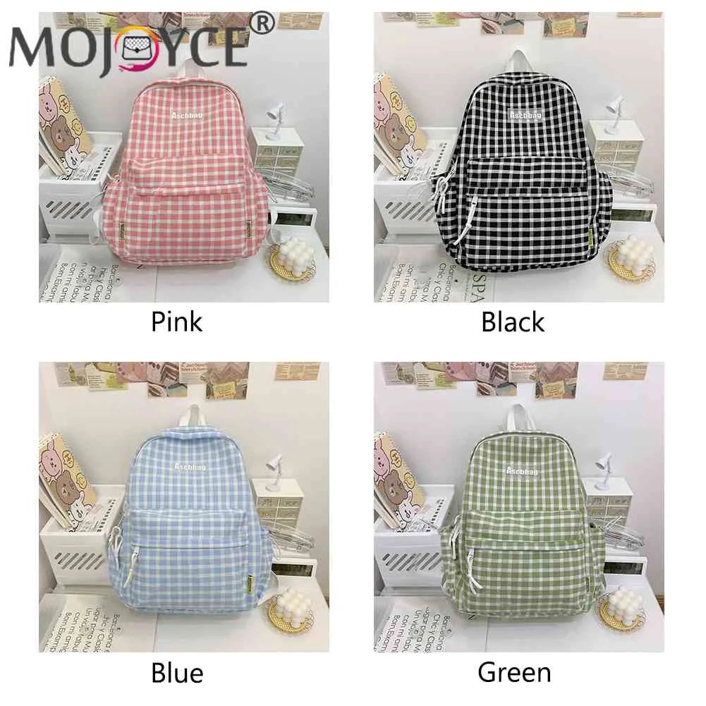 Plaid Backpack Student School Fresh Teenager Girl Laptop Bookbag