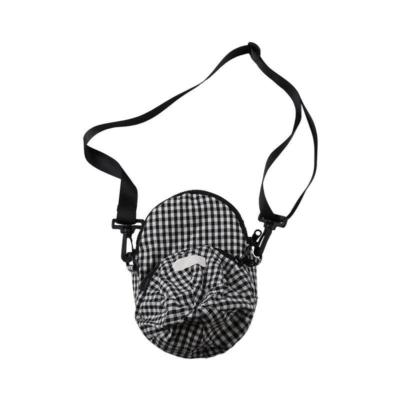 Plaid Baseball Cap Shoulder Bag with Embroidery Letter