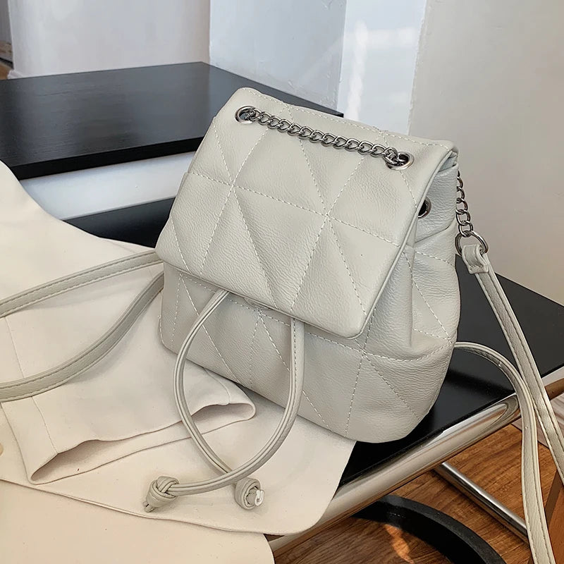 Plaid Chain Ladies Backpack PU Leather Handbag