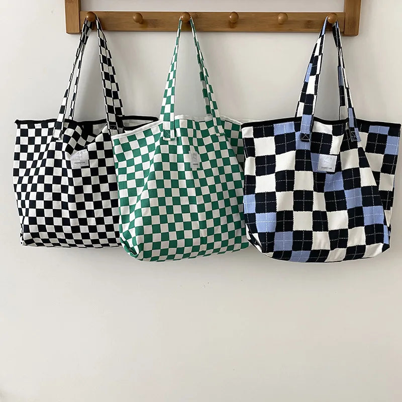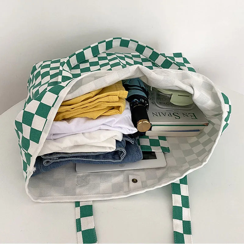 Plaid Checked Canvas Handbags Large Capacity Tote Bag