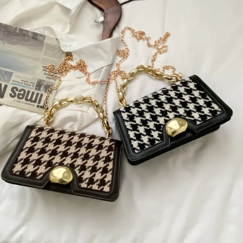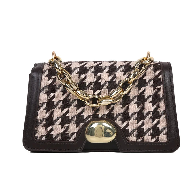 Plaid Crossbody Handbag Totes High PU Leather Chain Shoulder Messenger Bag