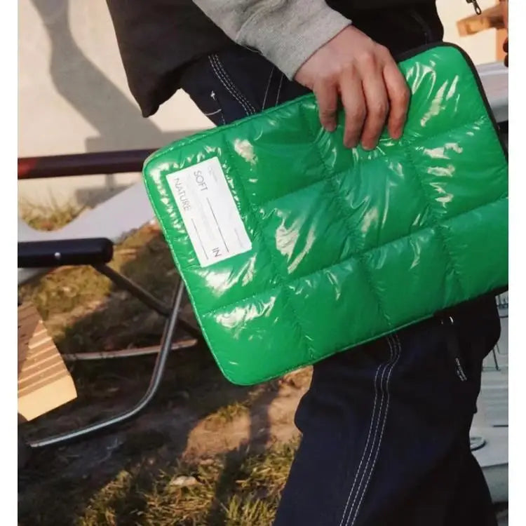 Stay stylish and practical with this green plaid puff shoulder bag made from space cotton. It's perfect for everyday use, featuring a fluffy duvet design and spacious interior for all your essentials.
