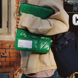 - Green plaid puff shoulder bag with space cotton material