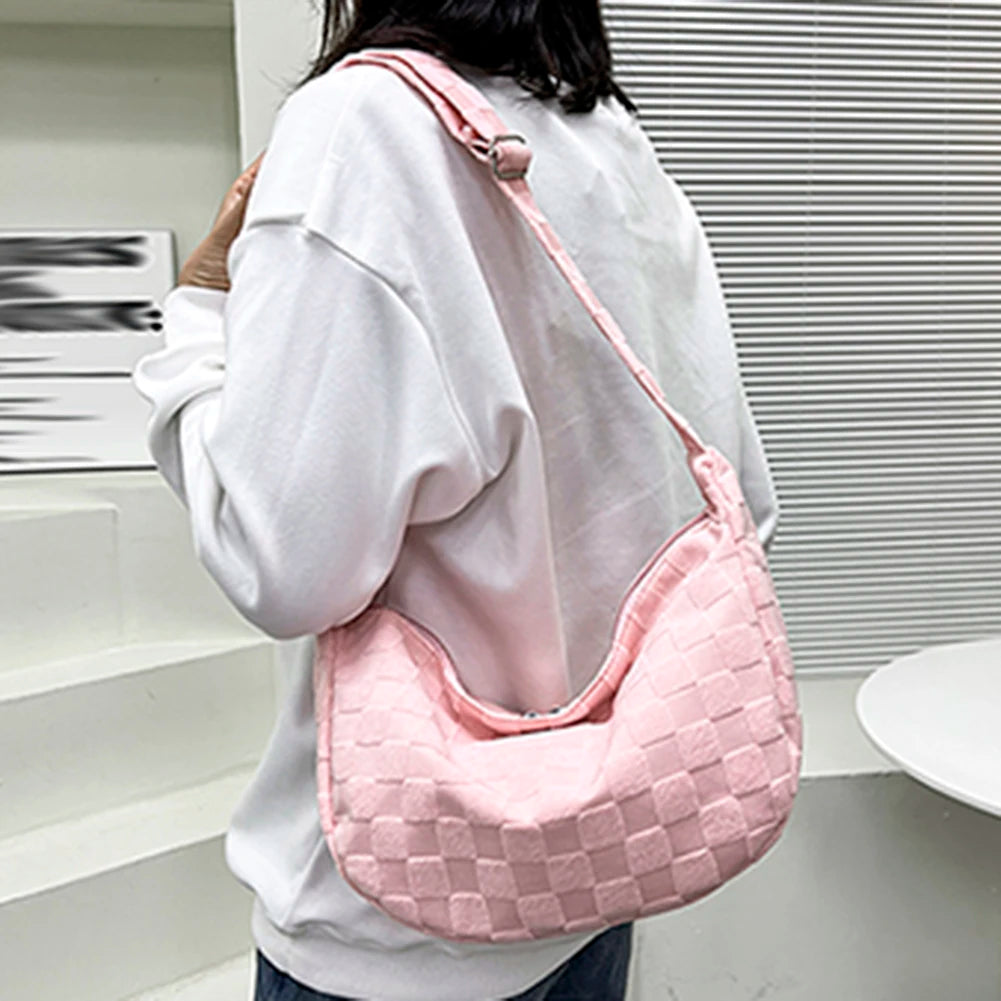 Plaid Woolen Shoulder Bag Large Capacity Soft Solid
