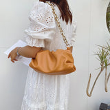 Stay chic and trendy with this stylish messenger bag featuring a pleated design and a thick chain clip cloud detail. Perfect for carrying your essentials under the arm.